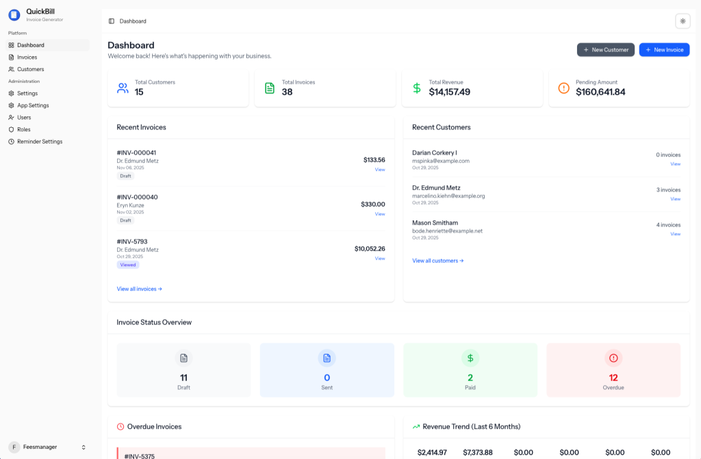 QuickBill is a self-hosted invoicing system built specifically for freelancers and small businesses who want simplicity, ownership, and flexibility — without recurring SaaS fees.